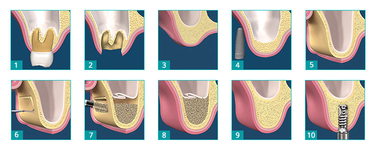Entscheidet man sich für eine Implantatversorgung ist es in manchen Fällen erforderlich den fehlenden Knochen zu rekonstruieren. Dies erfolgt durch einen Knochenaufbau. Dies kann mit verschiedenen Materilalien durchführen. Egal ob Eigenknochen, tierischer-, künstlicher- oder humaner Ersatz. Das passende Material für Sie können wir gemeinsam eruieren.